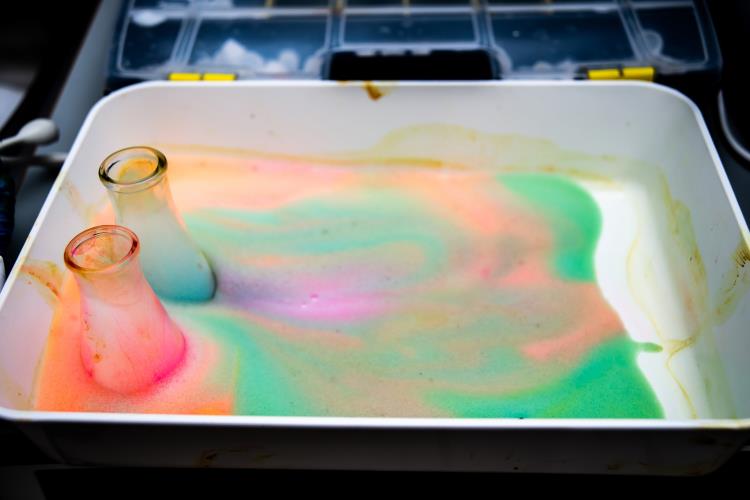 Школьники провели зрелищный химический опыт «Зубная паста для слона» вместе с наставником Наноквантума Светланой Дружининой. Такое экзотическое название опыт получил благодаря появлению большого объема пенистой массы.