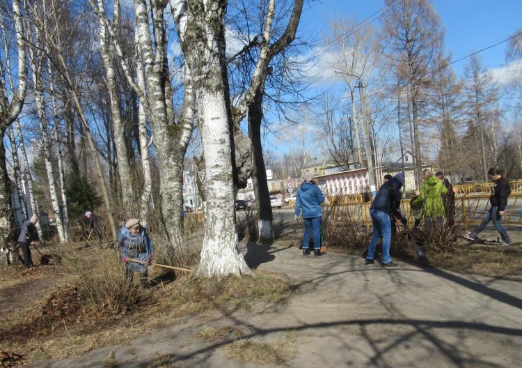 На уборку территорий от мусора, старой листвы и веток вышли коллективы организаций и жители многоквартирных домов.