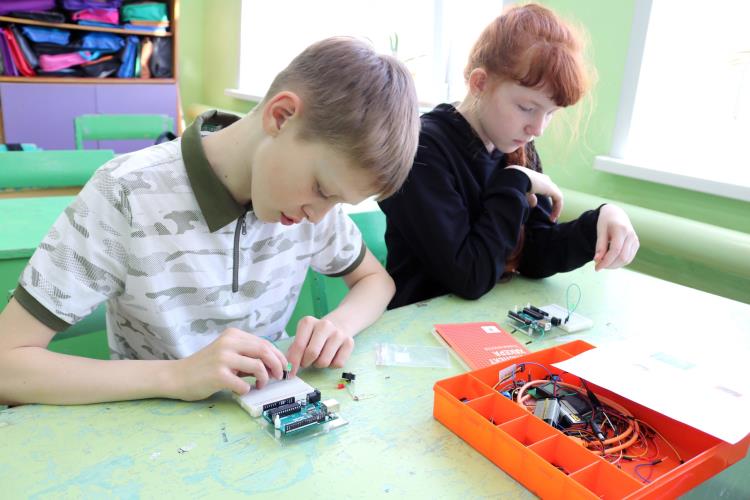 Вместе с педагогом Светланой Назаровой ребята занимались сборкой светофора с тремя мигающими светодиодами на основе Arduino.