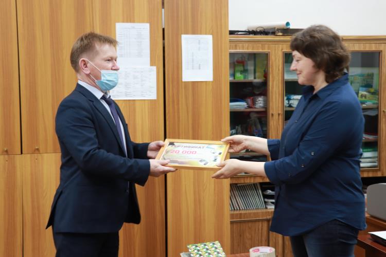 В ходе рабочей поездки А.Н. Уткин посетил школу, вручил коллективу сертификат на двадцать тысяч рублей для материально-технического оснащения и даже принял участие в съемке видеоролика с 11-классниками для районного выпускного бала «Маяк надежды», который организует Омутнинский металлургический завод 26 июня на площади предприятия.