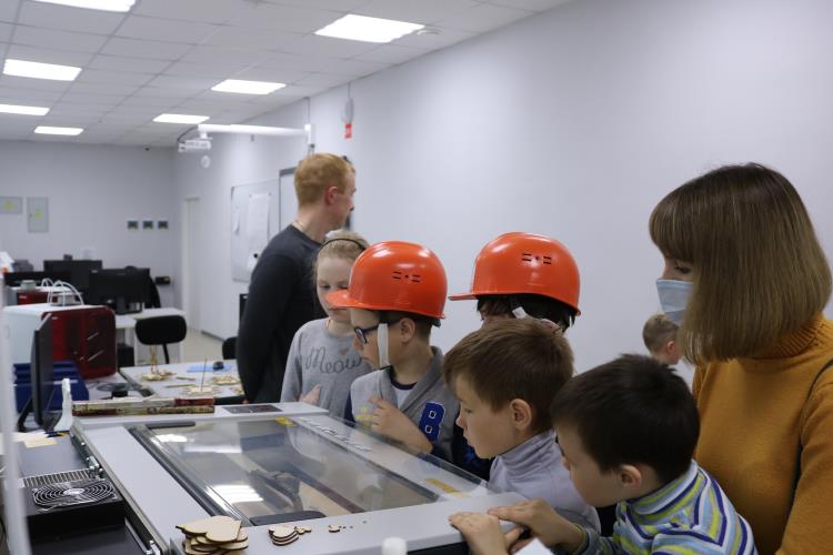 Вместе с наставником технопарка Василием Мечёвым участники мероприятия смастерили подставку для яиц с пасхальным кроликом.