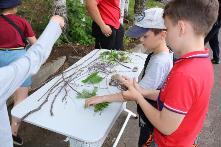 С Анной Рубаник ребята создавали художественную композицию из природных материалов.