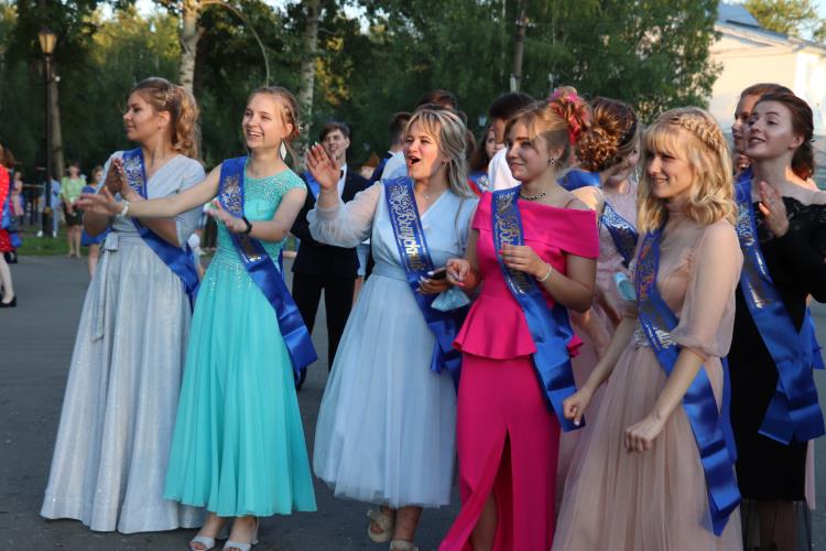 В честь выпускников прозвучали добрые слова напутствий и поздравлений от директора по социальным вопросам Омутнинского металлургического завода С.Ю. Куркова, главы района А.В. Малкова, главы города И.В. Шаталова и начальника Восточного образовательного округа О.Ю. Керовой. Танцевальный подарок исполнили студенты базовой кафедры ВятГУ в Омутнинске.