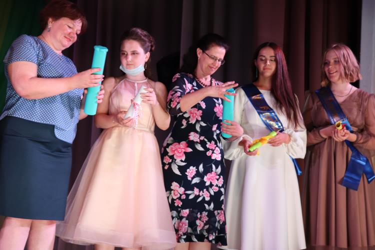 С ответным словом к друзьям, педагогам, родителям и организаторам праздника от имени выпускников обратились Илья Урванцев и Диана Шуплецова.