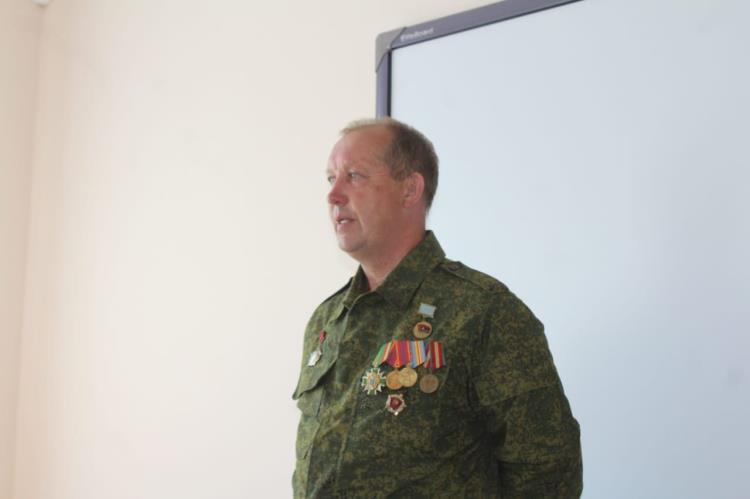 Урок мужества преподал ветеран боевых действий в Афганистане, заместитель председателя районного совета ветеранов по патриотическому воспитанию молодежи Владимир Бабкин.