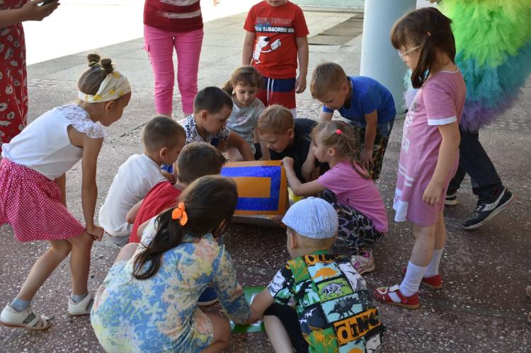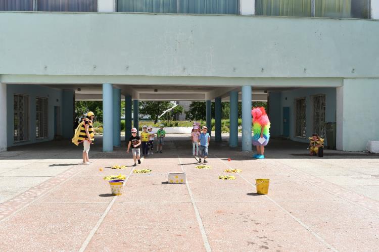 Яркие герои танцевали с ребятами флешмоб, собирали пыльцу на полянке, играли в цветной парашют, выполняли задания на скорость и координацию. В итоге ребята собрали слово, обозначающее место спрятанных сладостей. Все получили море положительных эмоций и сладкий приз.