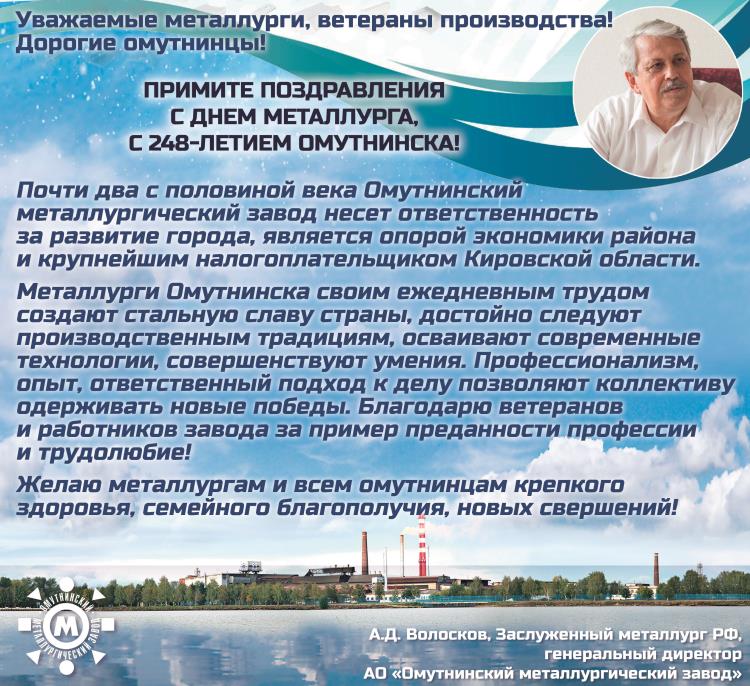 СобытиеПредседатель Совета директоров АО «ОМЗ» А.Д. Волосков - Почетный гражданин Кировской области