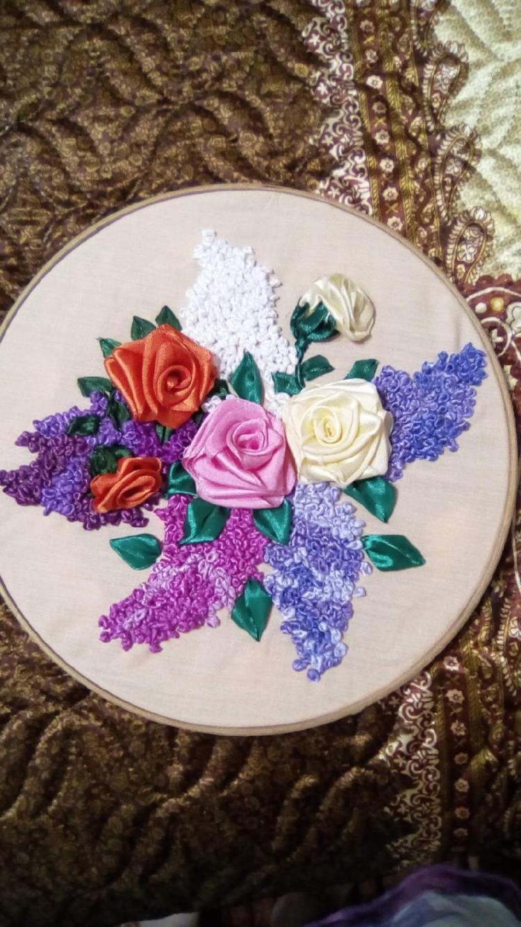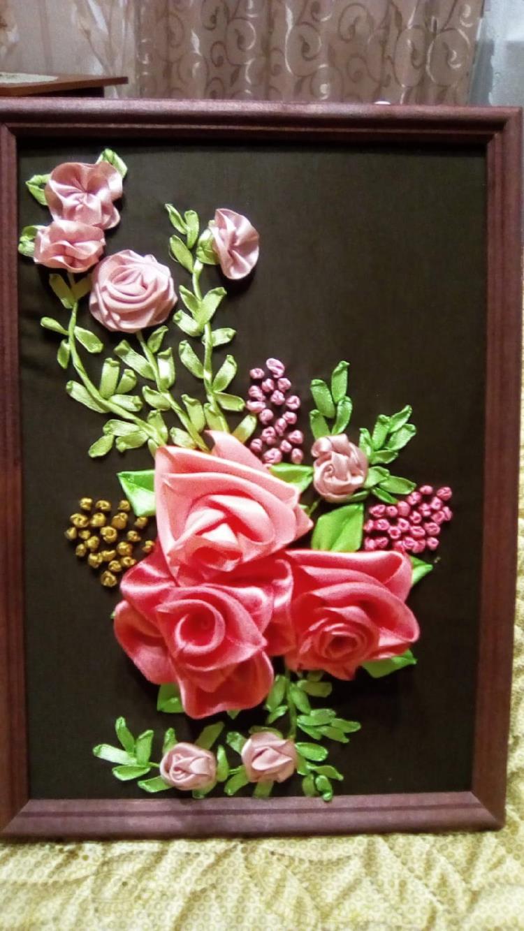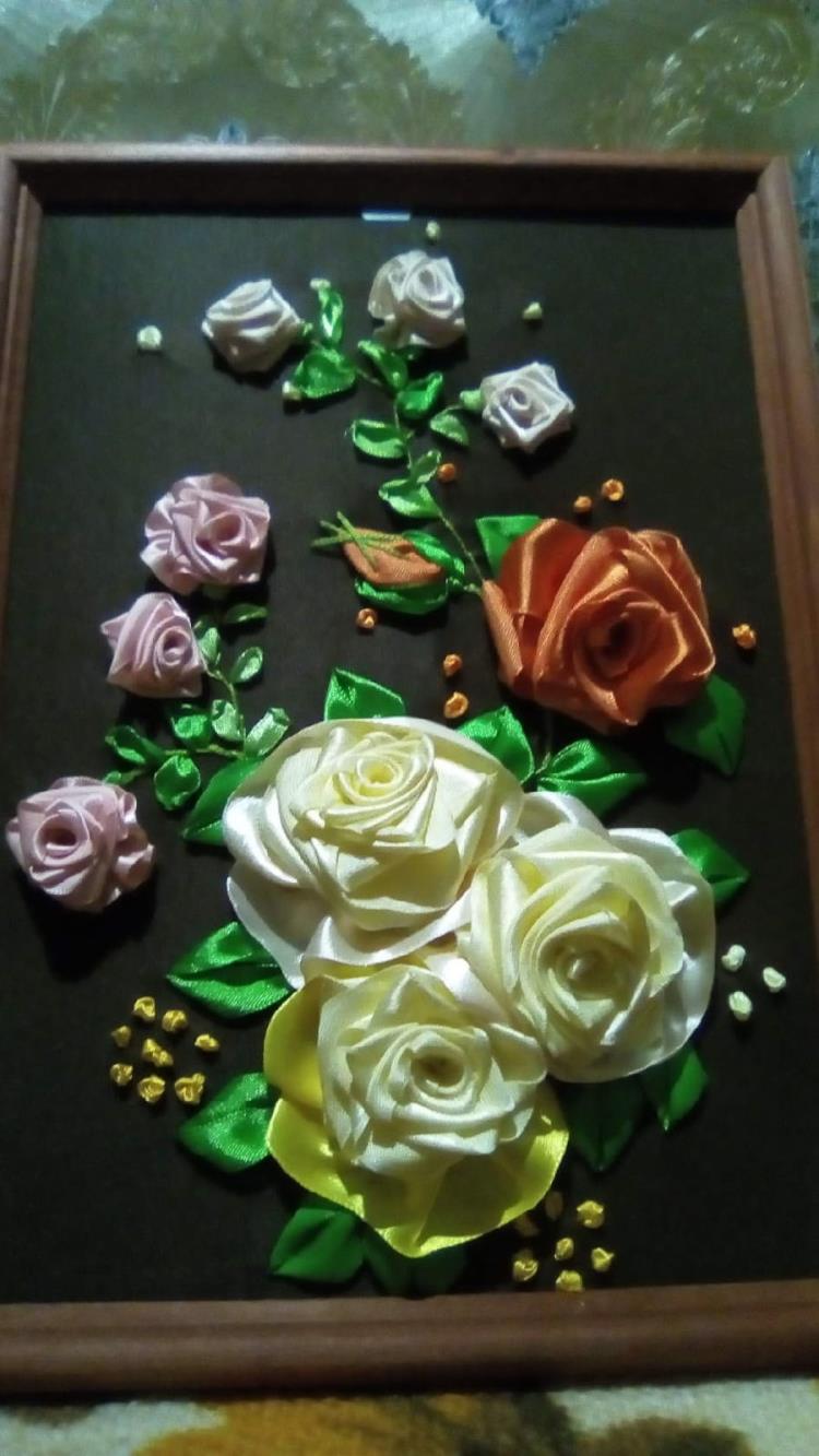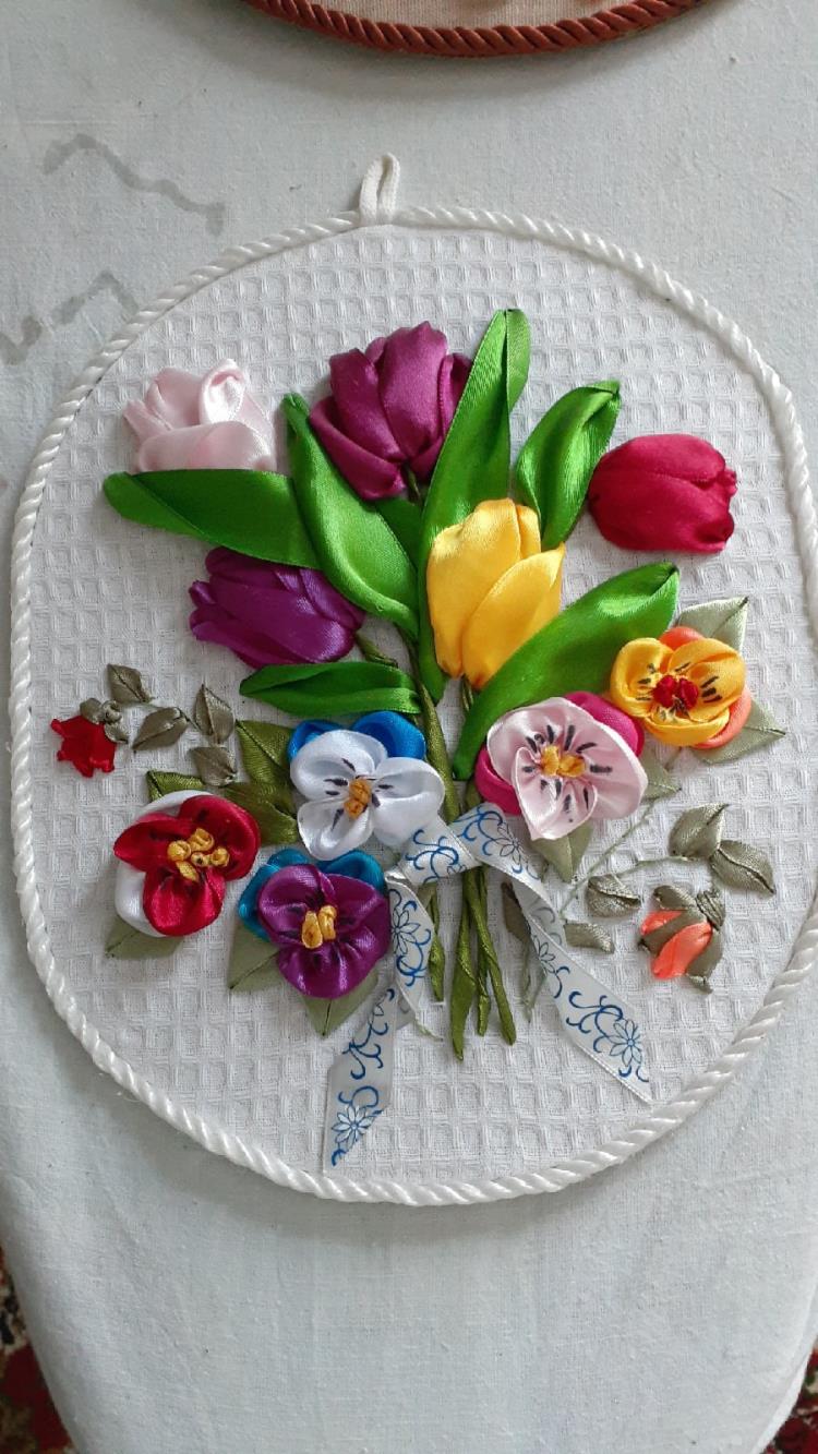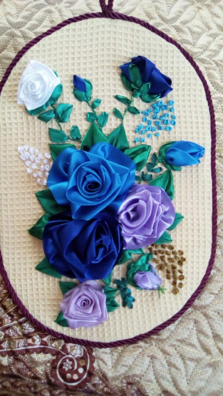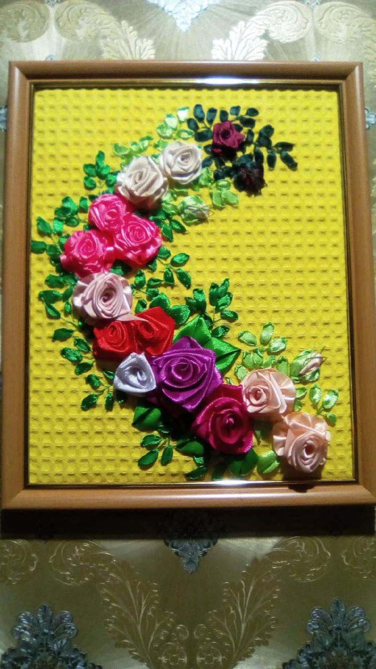 Работа с атласными лентами взяла в творческий плен. Это простой и доступный материал с богатой цветовой палитрой. В каждую картину и салфетку землячка вкладывает душу, настроение, мысли, какая-то создается с легкостью, над какой-то приходится корпеть.