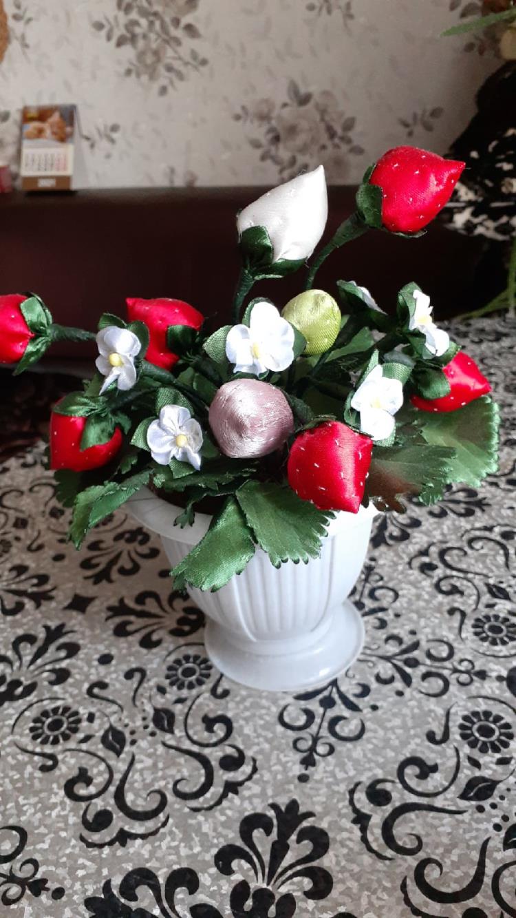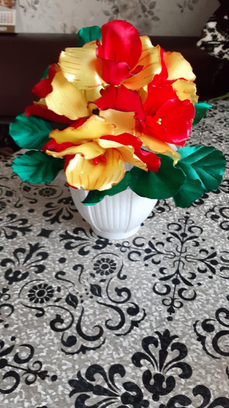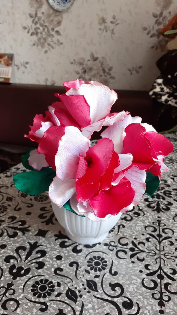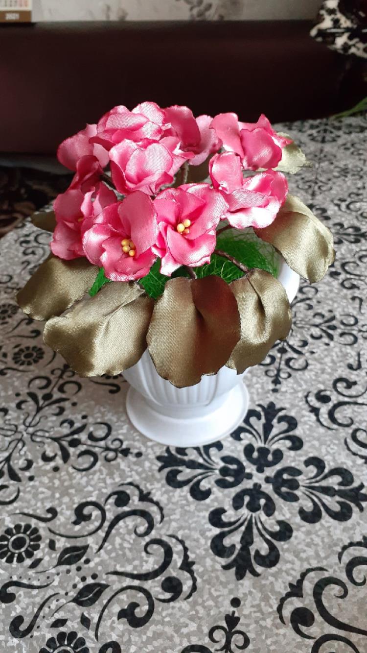 Наталья Геннадьевна постоянно экспериментирует, пробует новые техники, воплощает в жизнь самые разнообразные идеи, с опытом усложняет задачи и берется за более интересные. Из недавних работ мастерицы – комнатные цветы из атласных лент в горшочках. Созданные растения отличаются естественностью, воздушностью и подвижностью. В своих, бережно выполненных работах, рукодельница отображает все до мелочей: игру цвета, формы, изгиб лепестков, прожилки.