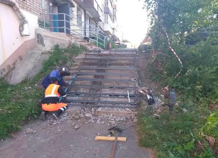 Разбитые провалившиеся ступени портили вид двора, благоустроенного в прошлом году по программе «Формирование комфортной городской среды». Передвижение по ним грозило травмами пешеходам, число которых, к тому же, значительно возросло из-за ремонта тротуара.