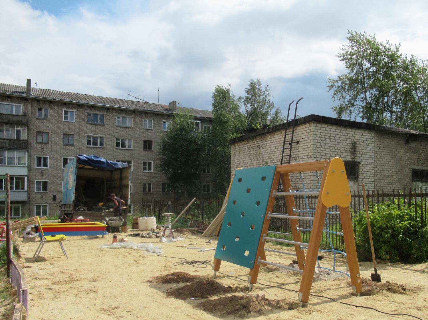 В рамках реализации на территории Омутнинского городского поселения проекта по поддержке местных инициатив продолжаются работы по устройству детской игровой площадки возле дома № 31 по ул. Юных пионеров.