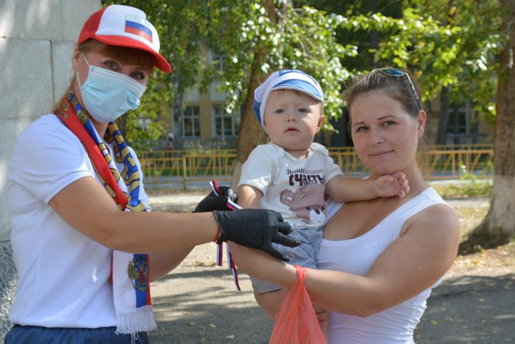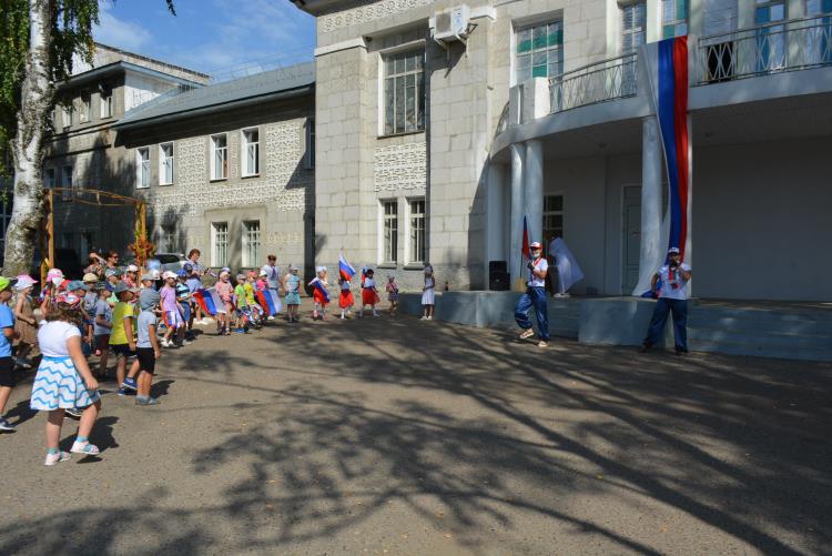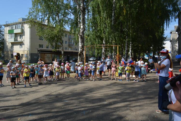 У парадного входа Дворца культуры «Металлург» собрались воспитанники детских садов Омутнинска, чтобы поздравить флаг с днем рождения и подарить свои танцевальные композиции.