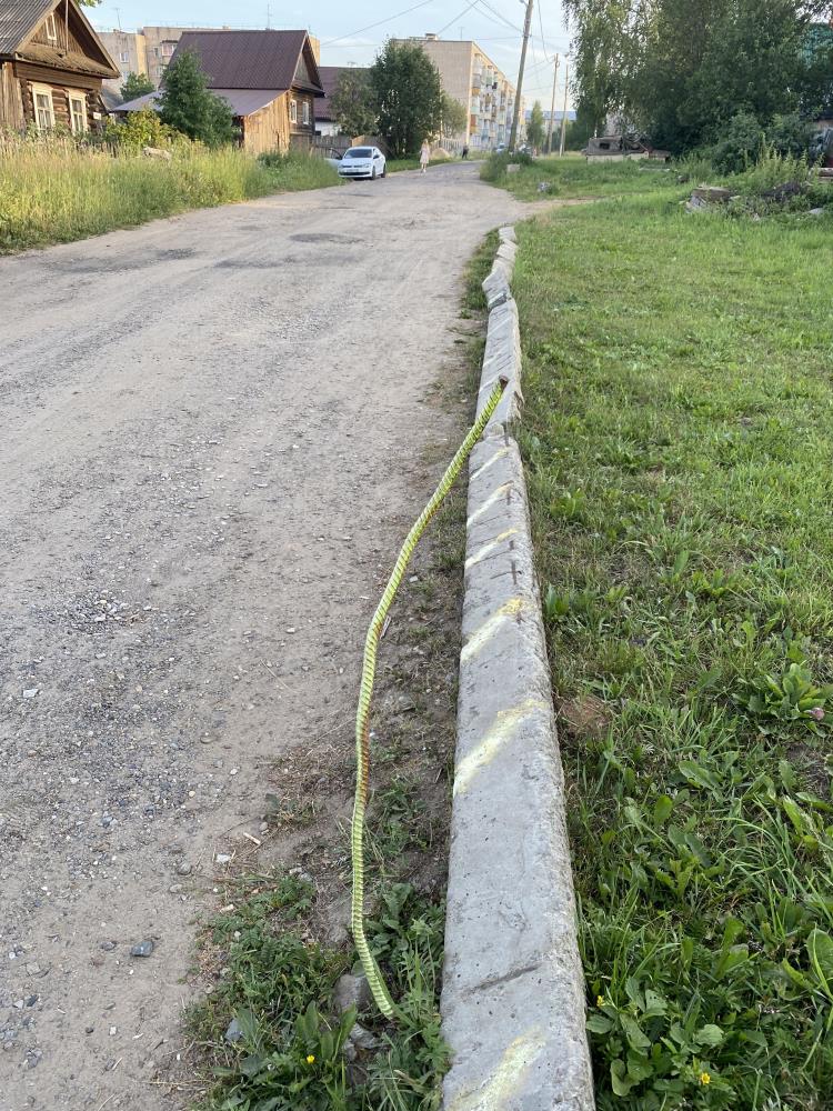 На одной из городских обочин по улице Володарского из-под земли торчит металлический штырь.