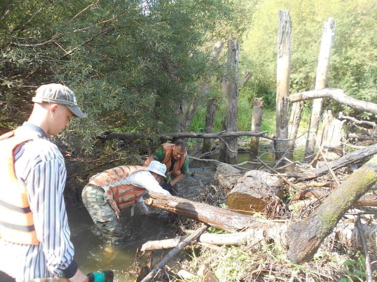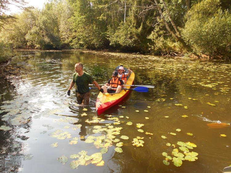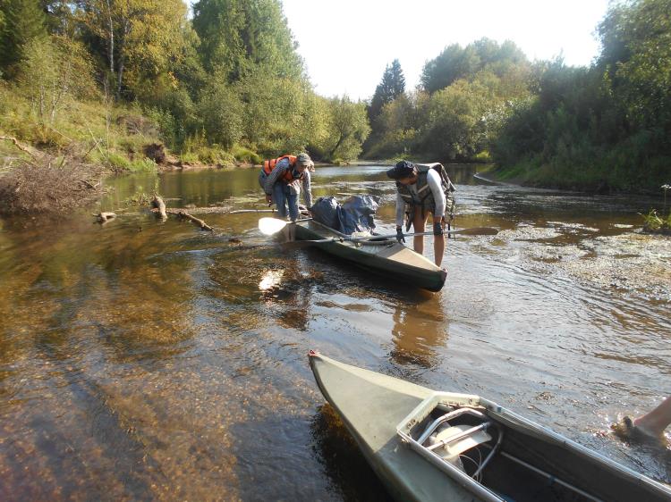 Маршрут был следующий: Омутнинск – Ежово – Песковка – Омутнинск. Путешествие началось с речки Омутной, где и застали первые трудности туристов. В связи с тем, что лето в этом году засушливое и в реке мало воды, практически все перекаты приходилось преодолевать пешком. К большому сожалению, Омутная не чистится от завалов, и туристам дважды приходилось делать обносы со всем снаряжением по берегу и не раз чистить завалы для прохода байдарок.
