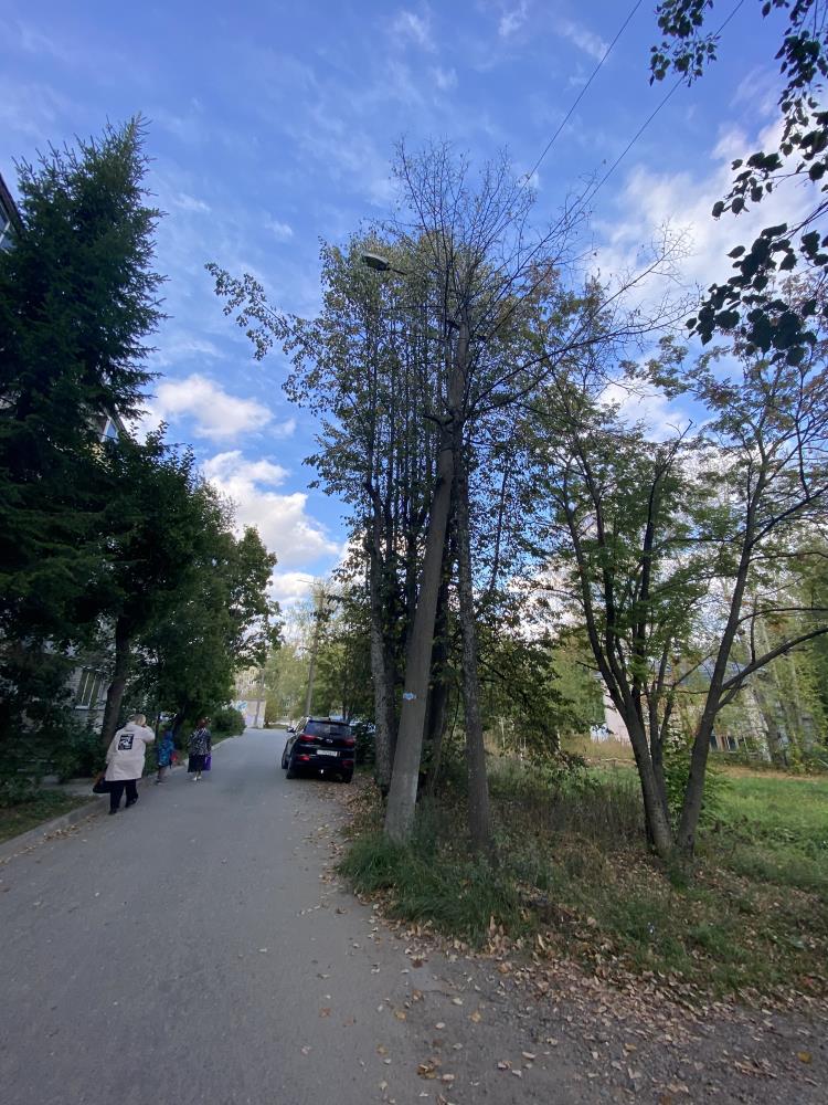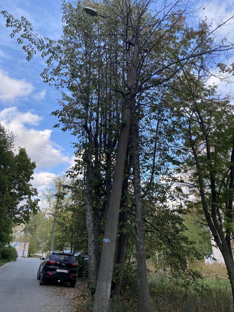 Массивные осветительные конструкции давно стоят не под прямым углом, как это положено: один фонарь накренился над тротуаром, другой – прислонился к дереву во дворе.