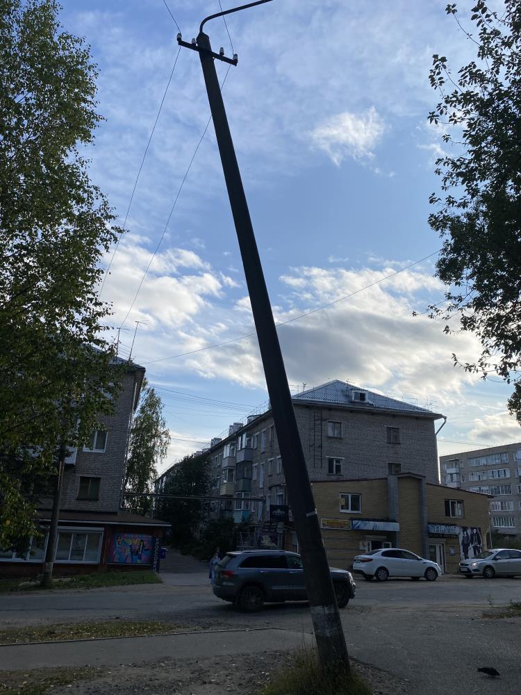 Столбы во дворе двадцать шестого дома на улице 30-летия Победы в районном центре словно делают зарядку, вот только влево и вправо они наклоняются, а выпрямиться не могут.