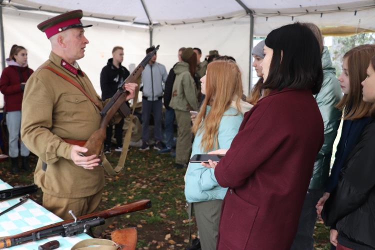 В пятницу и субботу учащиеся государственной, второй и шестой городских школ, политехнического техникума и Кировского филиала медицинского колледжа принимали участие в фестивале «От Кремля до Рейхстага». В его рамках состоялись экскурсии по экспозиции на основе материалов и экспонатов музея «Плацдарм», посвященной лыжному рейду десантников первой маневренной воздушно-десантной и 36 стрелковой бригад. Их провел руководитель Кировской молодежной поисковой организации «Долг» Ю.Т. Семененко. Ребята приняли участие в мастер-классах, соревнованиях по сборке и разборке оружия, интерактивной программе с элементами исторической реконструкции. Все это организовали студенты колледжа педагогики, экономики и права.