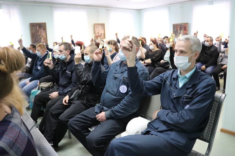 На мероприятии присутствовали генеральный директор завода А.Д. Волосков, председатель ППО Т.В. Мартемьянова, руководители и представители всех структурных подразделений.