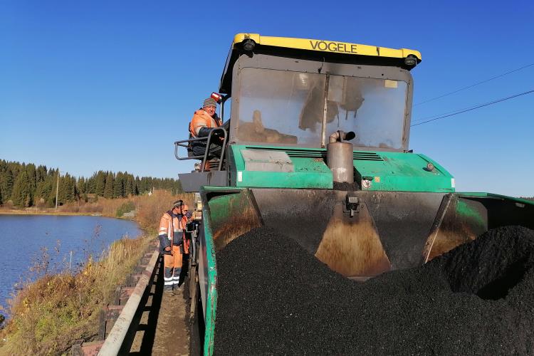 Один за другим подъезжают самосвалы, груженные асфальтом. Они работают в одной связке с укладчиками. Специализированная техника утрамбовывает и укатывает блестящую черную поверхность. Пышущий паром асфальт ровным слоем ложится на подготовленное полотно. Дорожники свое дело знают. В такой момент, становится понятно, бригаду бесполезно отвлекать. Каждый: и водитель самосвала, и укладчик, и оператор с помощником, и машинист катка несут ответственность за качество выполненной работы.