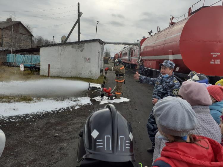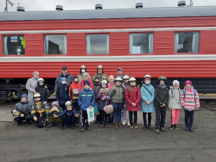 Более подробно с профессией пожарного, ребята познакомились в пожарном поезде станции Шлаковой. Экскурсию провел заместитель начальника пожарного поезда В.Ю. Барышников. Валерий Юрьевич рассказал ребятам о том, что, пожарный поезд предназначен для тушения пожара на железнодорожном транспорте и ликвидации аварийных ситуаций, для оказания помощи МЧС.