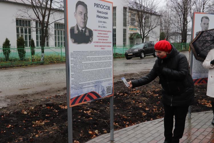 Сейчас аллея выглядит современной и комфортной. Дорожка вымощена тротуарной плиткой, есть скамьи и урны, в темное время суток горят фонари. В центре общественного пространства установлены стенды с именами героев Советского Союза – жителей нашего района. Гости и омутнинцы могут подробнее узнать о великих земляках с помощью QR-кодов: достаточно навести на них мобильный телефон с установленной заранее программой для сканирования данных такого формата.