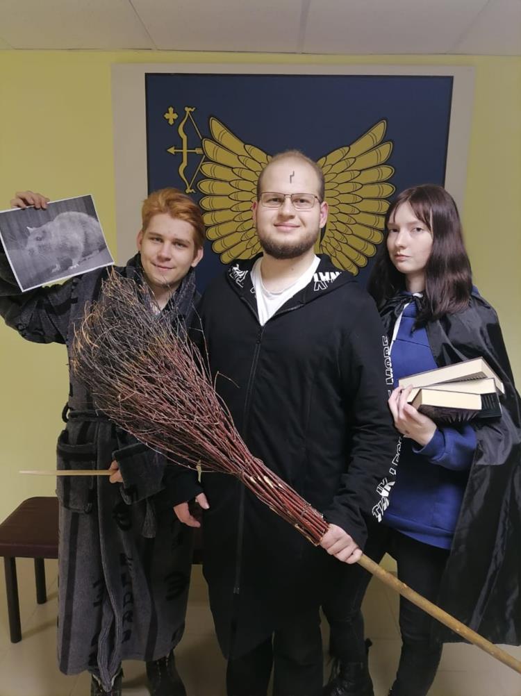В конце квеста командам было предложено принять участие в творческом конкурсе «Повтори фото», и пока в штабе организаторов подводили итоги, студенты придумывали образы волшебников из того, что было под рукой.