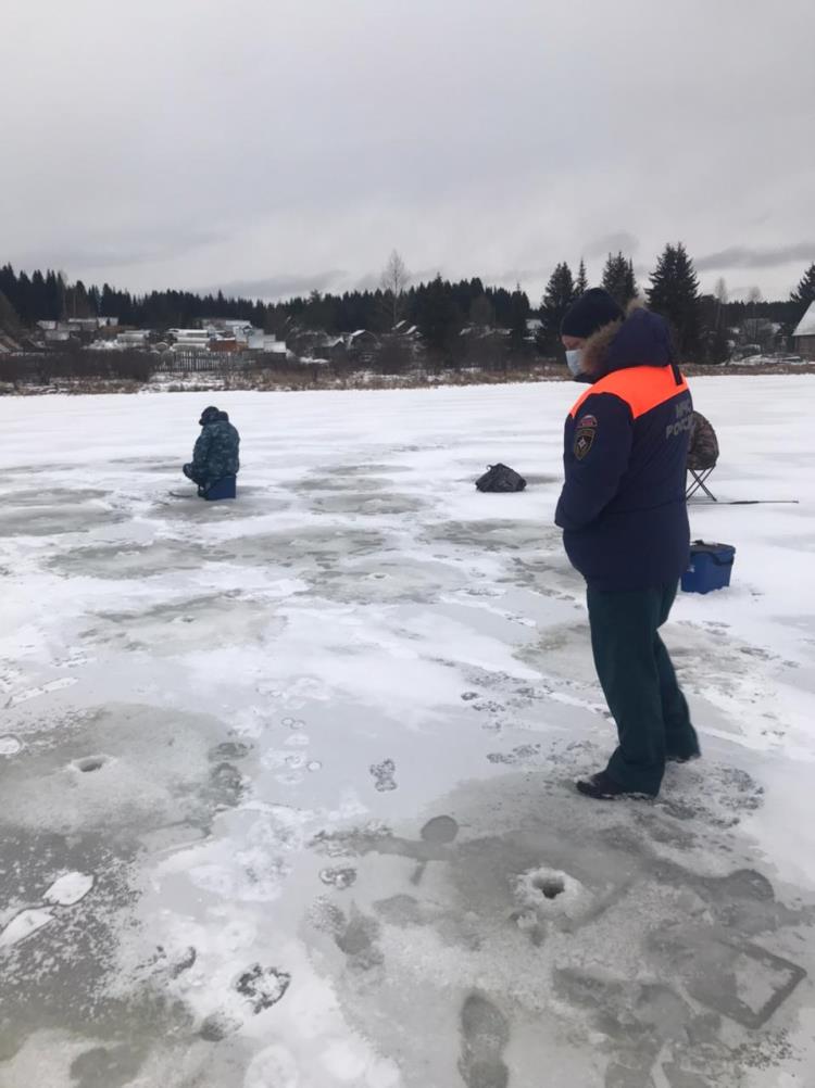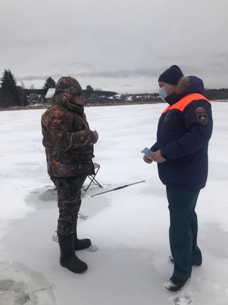 О безопасности в период установления тонкого льда на водоемах разъясняли рыбакам инспектор Государственной инспекции по маломерным судам (ГИМС) Омутнинского района Главного управления МЧС России по Кировской области Владимир Исупов и государственный инспектор по пожарному надзору Александр Чежегов.