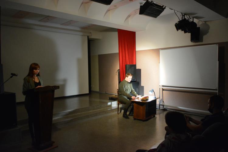 Ребята увидели уникальные исторические фотографии. История дополнялась проникновенными видеороликами и появлением военкома, который читал письма с фронта, докладывал об успехах в производстве, радовался победе.