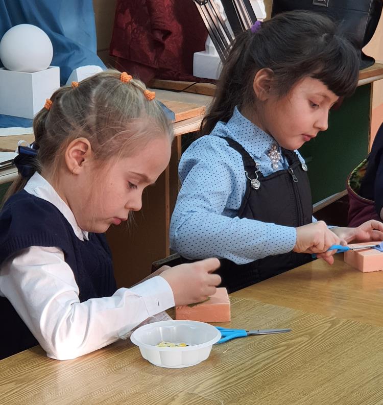 Ученики первого класса посетили мастер-класс преподавателей художественного отделения С.Л. Ившиной и А.Е. Баева. Ребята разделились на две подгруппы: девочки пошли учиться к Светлане Леонидовне, а мальчики к Андрею Евгеньевичу.