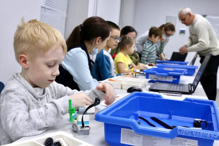 Началась серия мастер-классов со знакомства с Промробоквантумом. В начале занятия ученик квантума Даниил Мыслюк представил свою конкурсную работу «Детская спортивная машина «БАГГИ». А дальше ребята и родители под руководством наставника Юрия Постникова смогли сами собрать и запрограммировать робота на базе набора Lego WEDO. Получился робот-вентилятор.