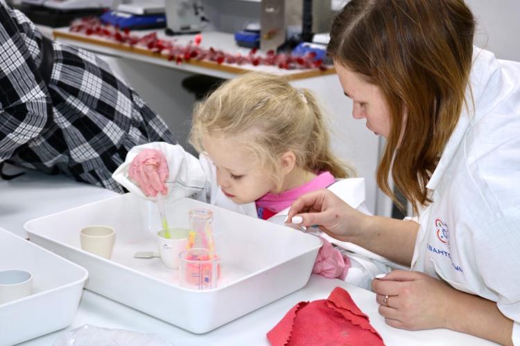 В Наноквантуме как всегда происходили чудеса. Вместе с педагогом Светланой Дружининой участники делали светящихся альгинатных червячков и зубную пасту для слона. Дети, как и их родители, с удовольствием наблюдали за этими интересными явлениями.