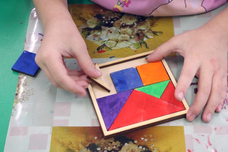 Ребята раскрасили и собрали деревянные геометрические фигуры головоломки «Танграм». Детали головоломки были предварительно изготовлены в хайтек-цехе Кванториума.