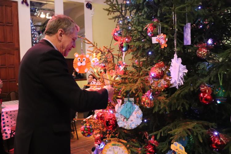В рамках благотворительного мероприятия в ДК «Металлург» была установлена новогодняя елка, украшенная тематическими открытками, в которых дети и представители ветеранских организаций написали пожелания и поделились своими заветными мечтами.