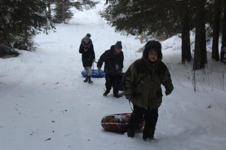 Положительные эмоции подросткам добавили костер, горячий чай и катание на тюбингах.