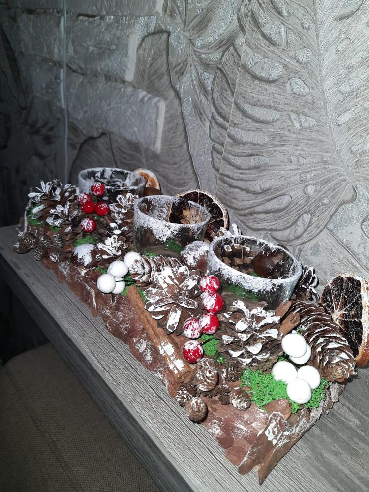 Желание мастерить выросло в любимое хобби. Каждый праздник Елена старается радовать родных подарками, сделанными своими руками. Материалами для сувениров служат ветки, спилы, свечи, шишки, бусины, блестки.