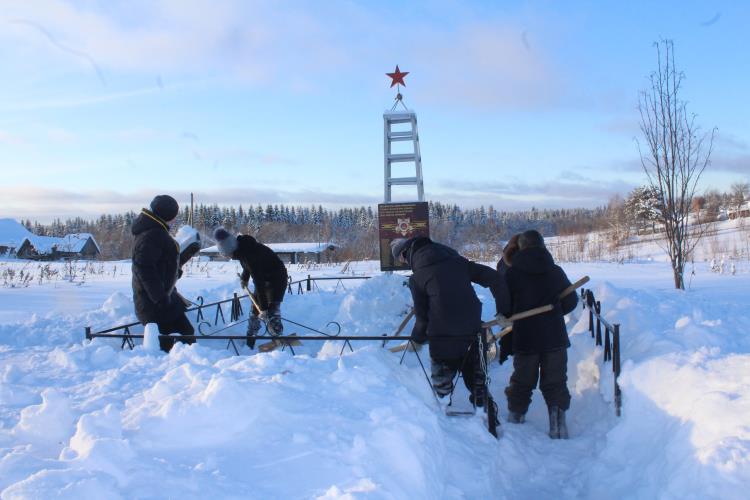 В рамках акции "Волонтёры Победы" - "Чистый памятник" подростки расчистили от снега дорожку к обелиску павшим в Великой Отечественной войне шахровчанам и прилегающую к нему территорию.