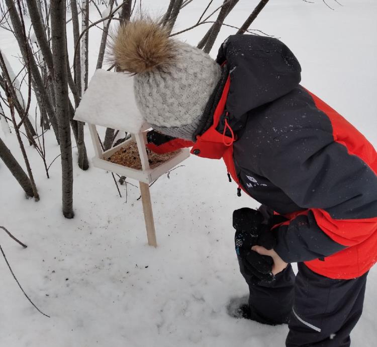 Ребята не только подкармливают пернатых, но и чистят кормушки, расширяют свои знания о повадках птиц, особенностях их внешнего вида.