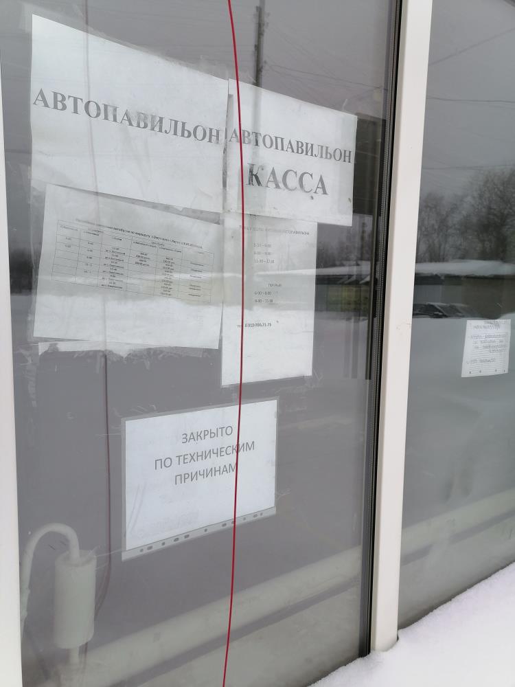 Тем не менее, на прошлой неделе автопавильон не работал, дорожка к входу не расчищена. На окне размещено объявление: «Закрыто по техническим причинам».