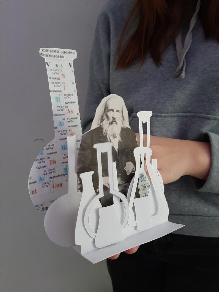 Ученица технопарка Яна Поздеева заняла 1 место в номинации «Художественная открытка». Ее работа была посвящена русскому ученому Дмитрию Ивановичу Менделееву.