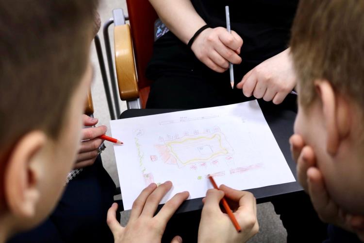 Для начала ребята изучили принципы и этапы методики. Затем перешли к практике - смоделировали ситуацию, когда преподаватель оказался в роли заказчика, а учащиеся - в роли дизайнеров. Задача состояла в том, чтобы по этапам дизайн-мышления сделать план кабинета по требованию заказчика.