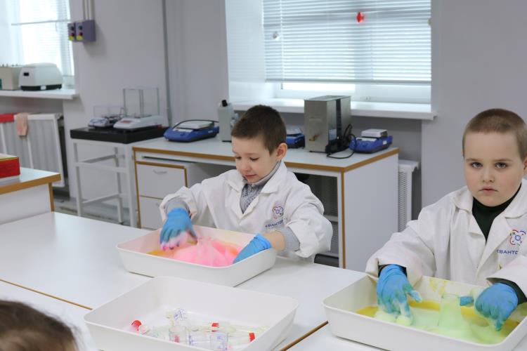 В наноквантуме ребята делали альгинатных червячков. Вместе с педагогом смешивали альгинат натрия с водой и красителем для получения массы. К тому же, червячки светились под ультрафиолетовой лампой.