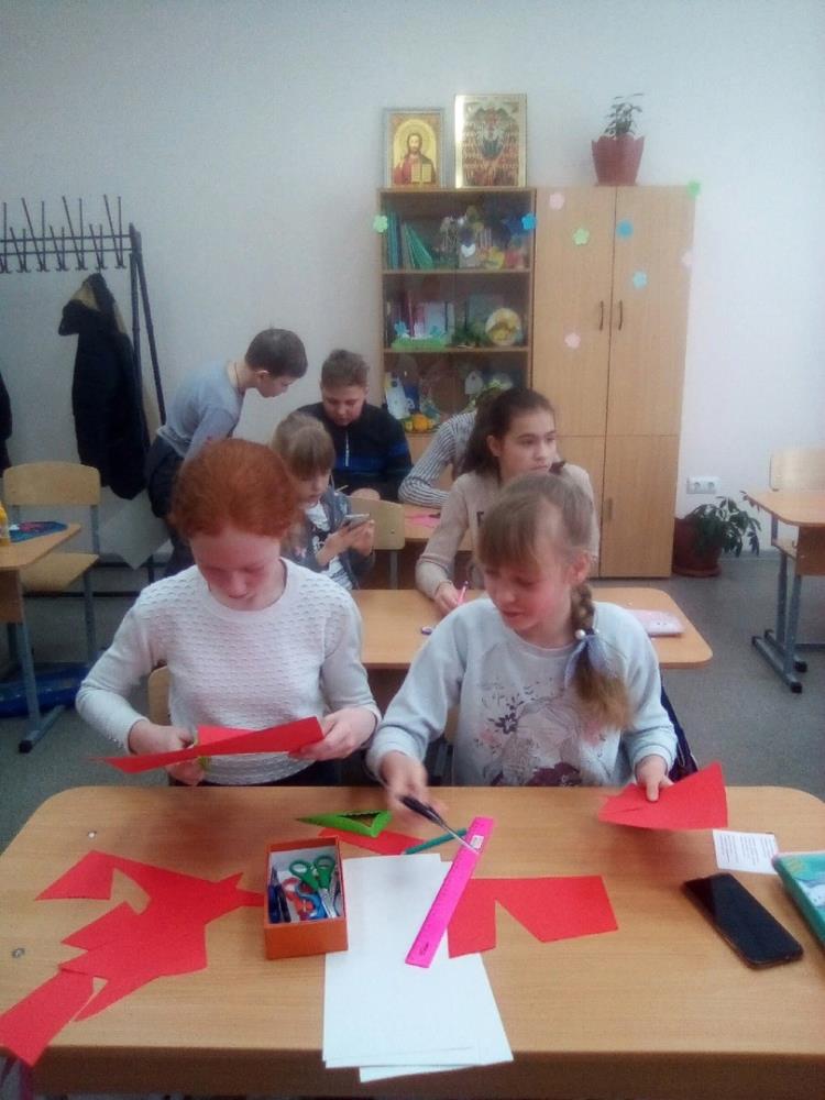 Курсанты православного ВПК и воспитанники детской воскресной школы присоединились к районной акции, объявленной штабом местного отделения ВВПОД "Юнармия", - "Поздравительная открытка".