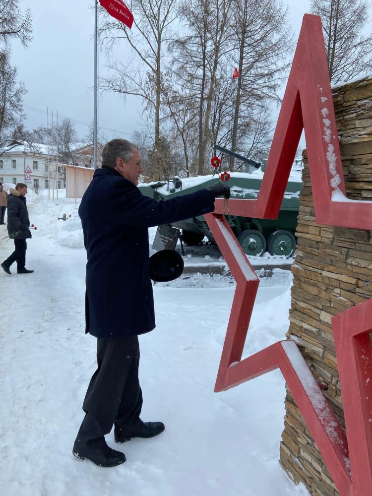 Глава Омутнинского района Александр Малков возложил цветы к мемориалу и почтил память воинов-интернационалистов – тех, кто принимал участие в боях за пределами Отечества и не вернулся домой.