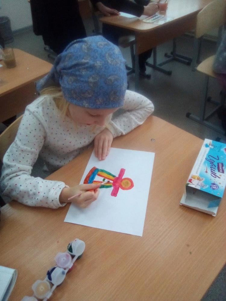 Яркую и весёлую бабу Масленицу рисовали воспитанники детской воскресной школы под руководством педагога по ИЗО и технологии Юлии Яровой.