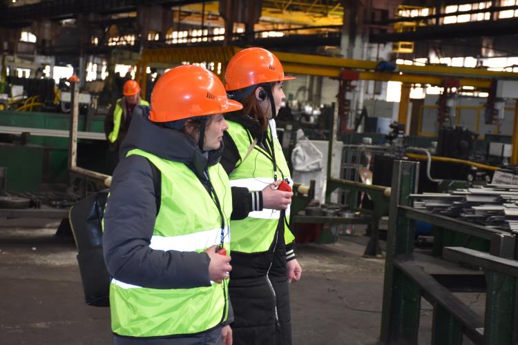Молодые металлурги Владимир Морозов и Дмитрий Жданов рассказали гостям о своей учебе на базовой кафедре металлургии и профессиональном становлении на заводе.