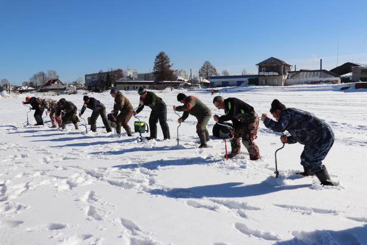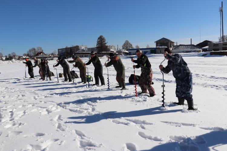 В конкурсе «Кто быстрее пробурит лунку» победил Андрей Чугреев из команды «Верховские рыбаки».