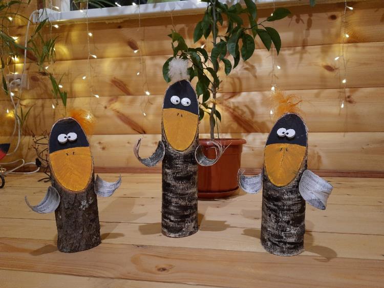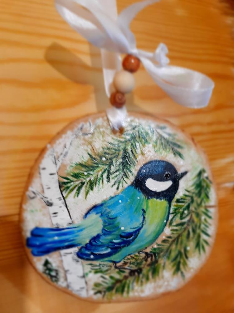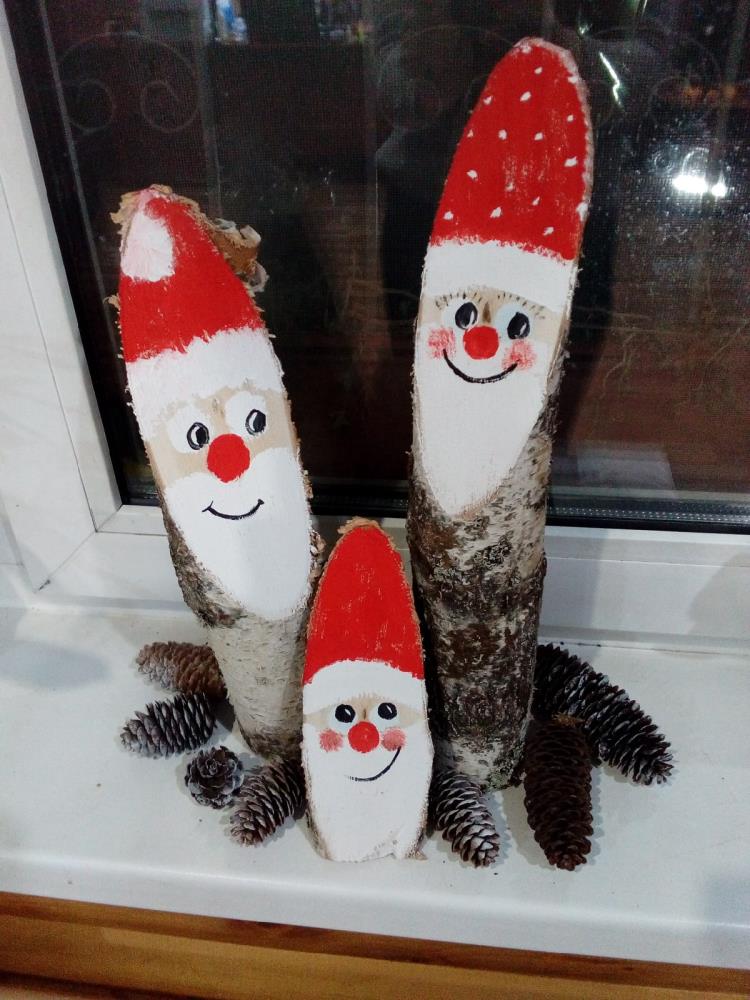 Есть в копилке творческих работ поделки, которые не подвергались дополнительной обработке, но именно своей естественностью они и интересны. А деревянные спилы – это огромный простор для создания различных предметов. Они стали холстом для рисунков и материалом для многочисленных елочных игрушек.