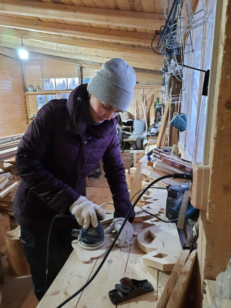 Наталья Суслова, жительница Восточного, мастерит оригинальные изделия из дерева, ловко управляясь с электролобзиком, шуруповертом и шлифовальной машинкой.