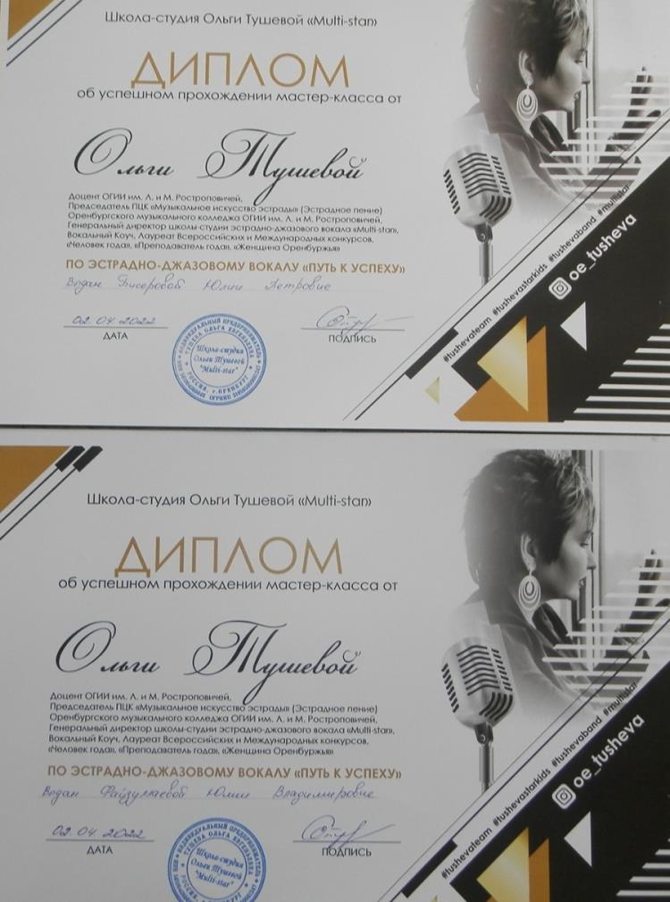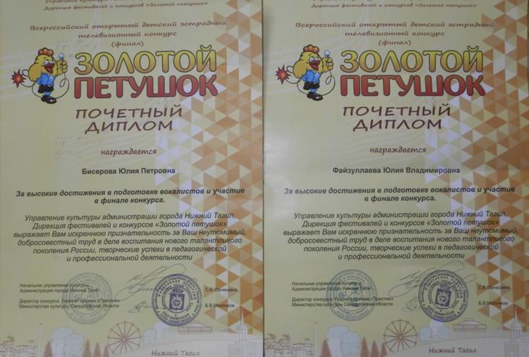 Благодарственные письма за высокие достижения в подготовке вокалистов и участие в финале конкурса вручены преподавателям Юлии Бисеровой и Юлии Файзуллаевой. Также они приняли участие в мастер-классе «Appoggio как система дыхания».