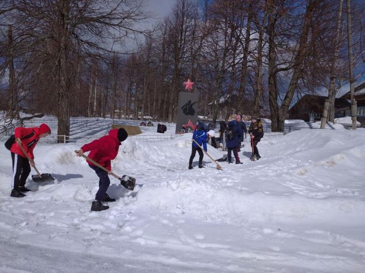 Школьники и взрослые провели уборку территории вокруг памятника «Погибшим землякам во время Великой Отечественной войны».